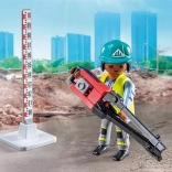 W zestawie 2 budowlańców w kaskach, krótkofalówka, miotła, łopata, statyw pomiarowy i inne narzędzia – do nieograniczonych scenariuszy i rozwoju kreatywności.