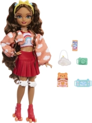 Lalka Barbie Dream Besties Teresa kocha jazdę na wrotkach i wnosi świeży, kolorowy styl inspirowany chmurkami. Dzięki artykułowanym stawom łatwo przyjmuje dynamiczne pozy, zachęcając dzieci do tworzenia własnych historii. Strój składa się z crop topu z tęczą, miękkiego kardiganu z nadrukiem chmurek, czerwonej plisowanej spódnicy oraz czerwonych wrotek na czterech kółkach z ochraniaczami na kolana.