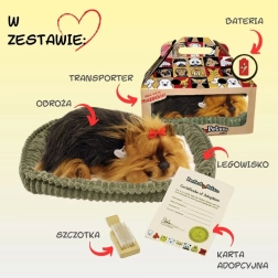 Odkryj urok wiernego towarzysza bez karmienia, spacerów i bałaganu. Perfect Petzzz chrapiące szczenię yorkshire terriera wygląda niezwykle realistycznie – zadowolone odpoczywa w miękkim legowisku, ma dopracowaną sierść i delikatnie chrapie, tworząc kojącą atmosferę.