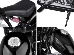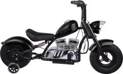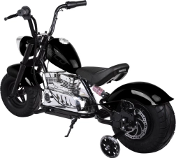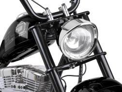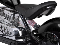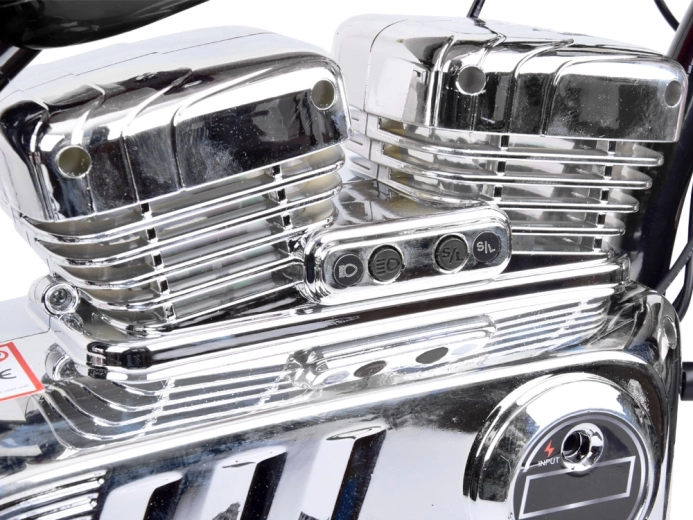 Stylowy dziecięcy chopper inspirowany klasycznymi motocyklami oferuje mocny silnik 24 V, akumulator 24 V 14 Ah, prędkość do 20 km/h oraz stalową konstrukcję dla stabilnej i bezpiecznej jazdy. Komfort zwiększają pompowane koła, tylne zawieszenie, siedzisko z eko skóry oraz ręczna regulacja prędkości w manetce gazu. Nie brakuje tylnego hamulca tarczowego, oświetlenia LED, efektów dźwiękowych i wejścia USB na ulubioną muzykę.