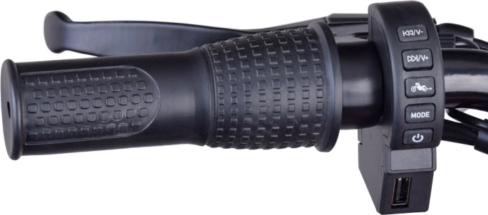 Para napędów 24 V z akumulatorem 24 V 14 Ah zapewnia dynamiczną jazdę i płynne przyspieszenie. Dzięki regulacji w manetce dziecko łatwo dopasuje tempo.