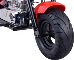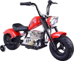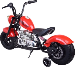 Ten realistyczny dziecięcy chopper inspirowany jest klasycznymi cruiserami i oferuje połączenie mocy, komfortu i bezpieczeństwa. Dzięki silnikowi 24 V, pojemnemu akumulatorowi 24 V 14 Ah i płynnej regulacji prędkości w manetce młodzi kierowcy będą się świetnie bawić na asfalcie i bruku. Stalowa rama, pompowane opony i tylne zawieszenie zapewniają stabilną i wygodną jazdę.