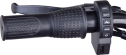 Silnik 24 V z akumulatorem 24 V 14 Ah zapewnia żwawą jazdę do 20 km/h. Manetka umożliwia płynny start bez szarpania i bezpieczne dostosowanie prędkości do umiejętności dziecka.