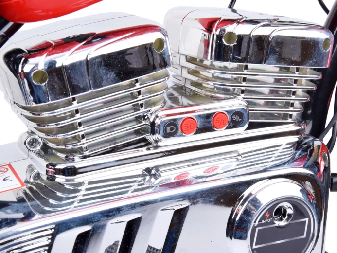 Stylowy elektryczny chopper dla dzieci z wydajnym silnikiem 24 V, akumulatorem 24 V 14 Ah oraz maksymalną prędkością do 20 km/h. Oferuje stalową konstrukcję, pompowane koła, tylne zawieszenie, hamulec tarczowy, oświetlenie LED i efekty dźwiękowe. Płynna regulacja gazu w manetce, wejście USB do muzyki oraz boczne kółka do bezpiecznej nauki jazdy.