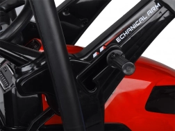 Dwa silniki 24 V / 200 W poradzą sobie na trawie, kostce i asfalcie. Pedał gazu oraz automatyczny hamulec po zwolnieniu pedału zapewniają bezpieczne sterowanie.