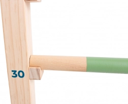 Rozwijaj swoje umiejętności i odwagę z tą drewnianą przeszkodą do skoków! Zacznij od niższej wysokości i stopniowo podejmuj większe wyzwania. Dzięki stabilnej podstawie i łatwo regulowanym drążkom, bezpieczeństwo podczas treningu jest zapewnione.