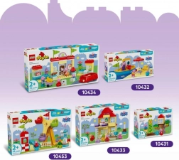 Dzieci pomogą Peppie i Tacie Śwince wypłynąć na rzekę kolorową łódką i poćwiczą koordynację ręka–oko podczas budowania i zabawy.