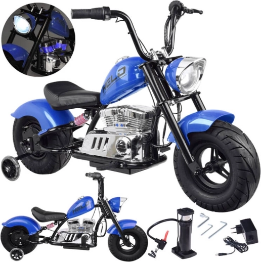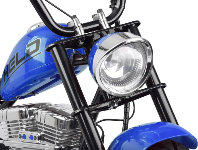 Stylowy dziecięcy chopper na akumulator o realistycznym wyglądzie, mocnym napędzie 24V i bogatym wyposażeniu dla bezpiecznej i zabawnej jazdy. Oferuje mocny silnik 24V, akumulator 24V 14Ah, prędkość do 20 km/h, stalową konstrukcję, pompowane koła, tylne zawieszenie, hamulec tarczowy oraz oświetlenie LED z efektami dźwiękowymi. Dzięki płynnej regulacji prędkości w manetce i kółkom bocznym świetnie sprawdzi się także dla początkujących.