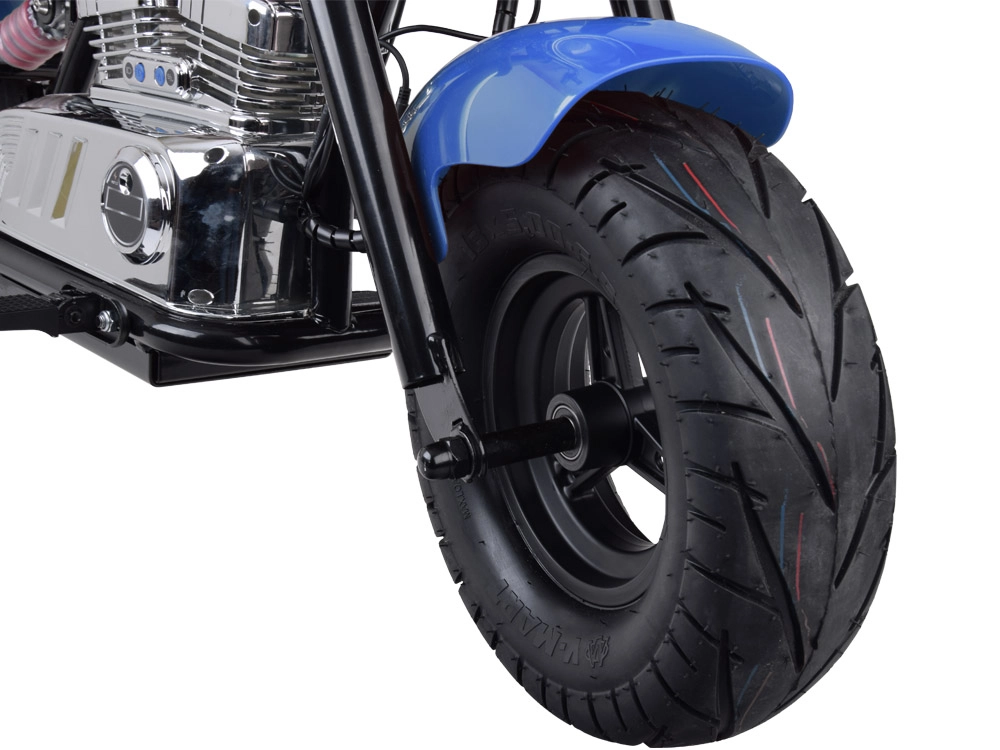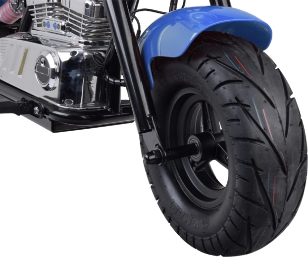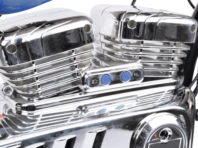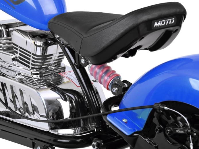Ten dziecięcy elektryczny chopper zapewnia wrażenia jak na prawdziwym motocyklu. Opływowa sylwetka, chromowane detale i wygodne siodło z eko skóry podkreślają premium charakter. Wydajny system 24V z akumulatorem 14Ah umożliwia dynamiczną jazdę do 20 km/h na asfalcie, kostce i innym twardym podłożu.
