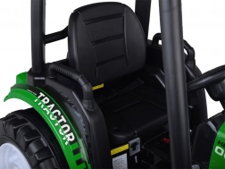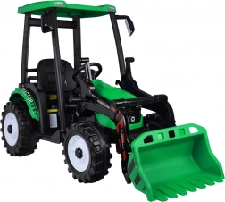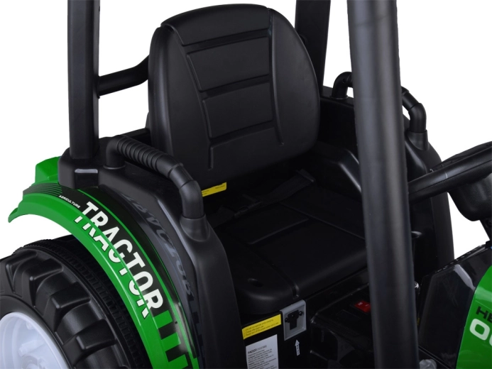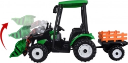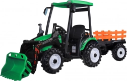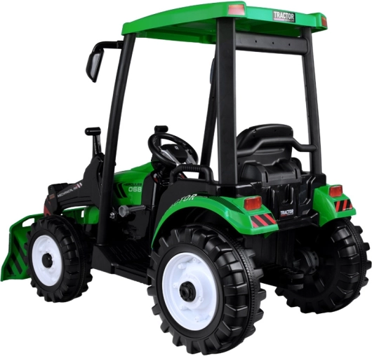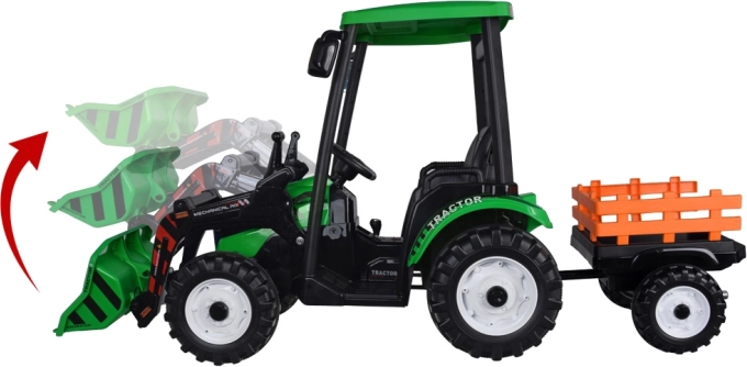 Elektryczny traktor dla małych farmerów wykonano z wytrzymałego plastiku, ma duże koła do jazdy po różnych nawierzchniach oraz kabinę z daszkiem dla wygodnego wsiadania. Dziecko może jeździć samodzielnie lub pod nadzorem rodzica za pomocą pilota. Ruchoma przednia łyżka i odpinana przyczepa poszerzają możliwości zabawy – przewożenie trawy, zabawek czy drobnych ładunków.