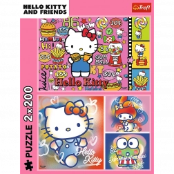 Puzzle 2x200 Hello Kitty i przyjaciele oferują dwa obrazy w jednym zestawie, każdy z 200 elementami, które zapewnią godziny zabawy dla dzieci i dorosłych. Ten zestaw puzzli przedstawia kolorowe kolaże inspirowane ulubioną bajką Hello Kitty, które po ułożeniu osiągają wymiary 410x275 mm.
