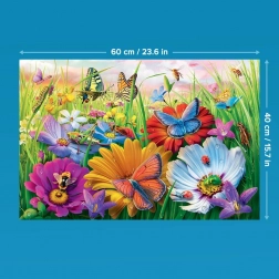 Zanurz się w barwny świat łąki pełnej owadów i ciesz się spokojnymi chwilami przy układance, która łączy pokolenia. Dzięki większym elementom układanie jest wygodne, szybkie i przejrzyste, więc obraz doceni każdy – od dzieci po dziadków.