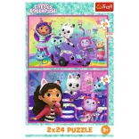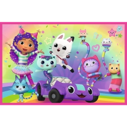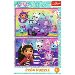 Puzzle 2x24 Zabawy z Gabby są idealne dla wszystkich dzieci, które kochają układanki. Zawierają dwa obrazki z ulubionej bajki Domek Gabby, każdy o wymiarach 275x180 mm.
