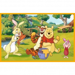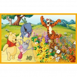 Zanurz się w magii bajek Disneya z puzzlami Dzień w ogrodzie, które przedstawiają przygody Kubusia Puchatka i jego przyjaciół. Każdy obrazek ma wymiary 275x180 mm i zachwyca żywymi kolorami oraz detalami.