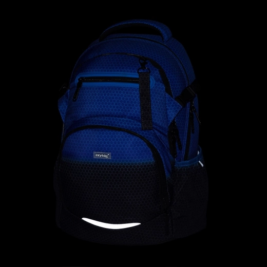 Ergonomiczny plecak szkolny OXY Ombre Blue dla dzieci od 3. klasy. Anatomiczne plecy, 28 l, 960 g, sztywne dno, elementy odblaskowe i kieszenie na butelkę. Wygoda i styl.