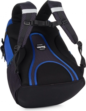 Przemyślany układ z dwiema pojemnymi komorami pomieści wszystkie przybory szkolne. Boczne elastyczne kieszenie są idealne na butelkę z napojem, a przednia kieszonka bezpiecznie przechowa mniejszą przekąskę lub drobiazgi. Sztywne dno zapewnia stabilność samodzielnie stojącego plecaka, a elementy odblaskowe zwiększają widoczność dziecka o zmierzchu i w nocy.