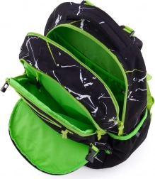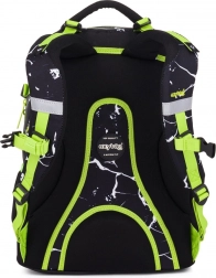Lekki i wytrzymały plecak szkolny Oxy Ombre Electric dla dzieci od 3. klasy łączy anatomicznie ukształtowane plecy, usztywnione szelki oraz pas piersiowy dla wygodnego noszenia. Oferuje dwie pojemne komory, boczne kieszenie na butelkę, praktyczną przednią kieszonkę na drugie śniadanie oraz elementy odblaskowe dla bezpieczeństwa. Solidne dno zapewnia stabilność po odłożeniu.