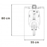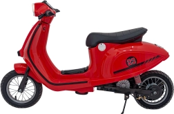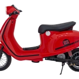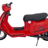 Retro styl i jaskrawoczerwony kolor czynią z tego skutera modny dodatek każdego młodego kierowcy.