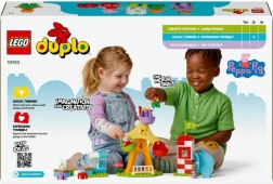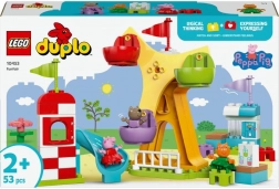 Zestaw LEGO DUPLO Świnka Peppa – wesołe miasteczko przenosi dzieci do świata ulubionego serialu. Idealny na pierwsze kroki w budowaniu: dzieci mogą posadzić postacie w gondolach i zakręcić diabelskim kołem, zjeżdżać po zjeżdżalni lub bawić się przy stoisku z sokami. W swobodnej zabawie ćwiczą koordynację ręka–oko i odkrywają emocje związane z nowymi doświadczeniami.