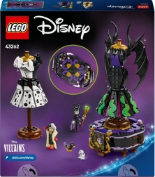 Ten stylowy zestaw dla starszych dzieci i dorosłych fanów oferuje dwa imponujące modele sukni inspirowane słynnymi czarnymi charakterami Disney. W pudełku znajdziesz dwa oddzielne wieszaki na suknie, stojak ekspozycyjny z miejscem do przechowywania minilaleczek, zwierzątek i akcesoriów, a także elementy do stworzenia trzech różnych wzorów na dekoracyjnym panelu. Model idealny zarówno do odgrywania historii, jak i do designerskiej ekspozycji.