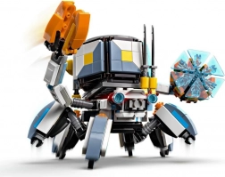 Zbuduj i zaaranżuj dwie szczegółowe mechaniczne bestie: Krabostracha z ruchomymi kończynami, otwieranymi szczypcami, odczepianą kapsułą i tarczą energetyczną oraz Zębacza z otwieranymi szczękami, obrotowym tułowiem i elastyczną szyją, głową i nogami. Scenę uzupełnią wysokie trawy, ognisko i skrzynia ze skarbem do kreatywnych historii.