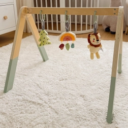 Baby gym TOOKY TOY został zaprojektowany tak, aby łagodnie rozwijać zmysły noworodków i niemowląt. Trzy wiszące zabawki zachęcają malucha do sięgania i chwytania, naturalnie wzmacniając koordynację i zręczność. Delikatne dźwięki grzechotki, szeleszczenia i piszczka wspierają percepcję i koncentrację.
