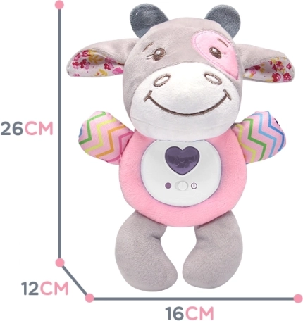 Interaktywny pluszowy Byczek uspokoi i uśpi twoje dziecko. Zabawka umożliwia odtwarzanie kołysanek oraz wyświetlanie kolorowych światełek, które zajmą małego odkrywcę. Ten miękki pluszowy przyjaciel będzie towarzyszem twojego dziecka już od najmłodszych lat.