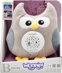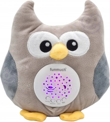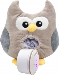 Pluszowa sowa łączy lampkę nocną, projektor i moduł dźwiękowy w jednym. Miękkie, przyjemne w dotyku ciało wypełnione watą jest idealne do przytulania. Na brzuszku wyświetla delikatne gwiazdki i księżyc o zmieniających się kolorach, a jednocześnie odtwarza kołysanki lub biały szum, w tym bicie serca, zapewniając naturalne ukojenie.