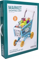 Dziecięcy wózek zakupowy z bogatym zestawem akcesoriów ucieszy wszystkich małych sprzedawców. W komplecie znajduje się 56 sztuk produktów spożywczych oraz ilustrowana instrukcja ułatwiająca montaż. Stabilne wykonanie i wymiary 40 × 24,5 × 44 cm są idealne do dziecięcej zabawy w domu i w podróży.