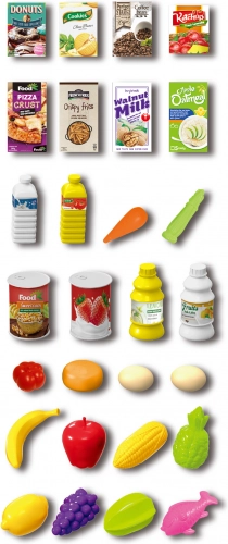 - Kompletny zestaw: 56 sztuk produktów do realistycznej zabawy.