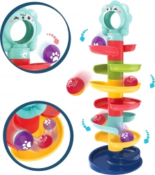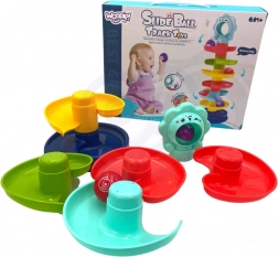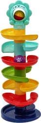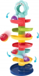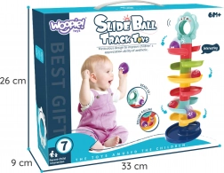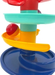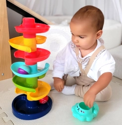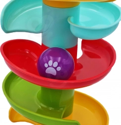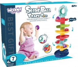 Ten unikalny kulodrom marki Woopie jest idealnym elementem zabaw dla dzieci od 6 miesięcy. Dzięki spiralnej wieży dzieci mogą obserwować, jak kulki toczą się z góry na dół, co pomaga rozwijać ich zdolności koordynacyjne i śledzenie wizualne. Rozmiar i waga kulek są idealne dla małych dziecięcych rączek, co umożliwia łatwą manipulację.