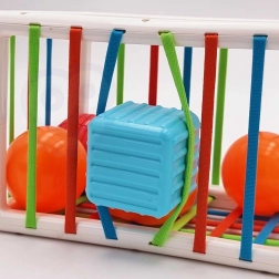 Kostkę można również wykorzystać do nauki kolorów i kształtów w późniejszym wieku. Elastyczne kolorowe gumy kostki są przyjemne dla dziecka i ułatwiają wkładanie przedmiotów. Ten niezastąpiony produkt jest idealny dla dzieci od 12 miesięcy, pomagając rozwijać małą motorykę.
