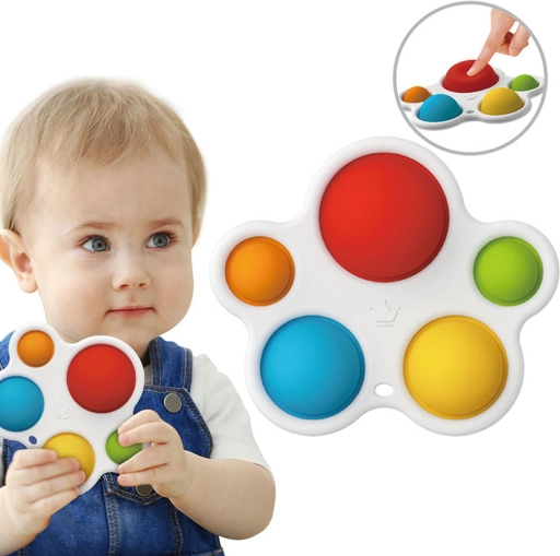 Silikonowe bąbelki występują w różnych kolorach i są przeznaczone do naciskania, co pomaga rozwijać motorykę małą i umiejętności sensoryczne.