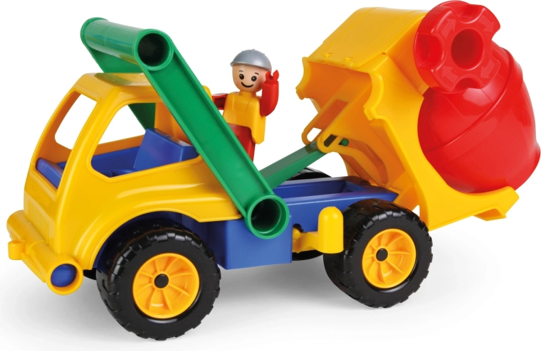 Betoniarka z wysokiej jakości, wytrzymałego plastiku nadaje się do zabawy w domu i na zewnątrz, na piaskownicy. Zawiera blokadę przed niepożądanym przechyleniem oraz otwieraną kabinę z aktywnym ludzikiem.