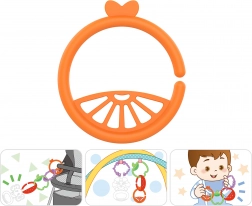 Wykonane z miękkiego, lekkiego i wytrzymałego plastiku przyjaznego dla dziecięcych dziąseł. Gryzaki mają teksturovaną powierzchnię dla efektywnego masażu i są dopasowane do małych rączek, aby ułatwić chwytanie. Wykorzystasz je jako gryzak, kółka łączące oraz klips do zawieszania – uniwersalny pomocnik w domu i w podróży.