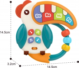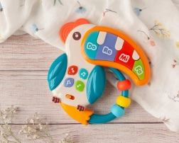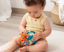 Cztery kolorowe klawisze odtwarzają dźwięki i krótkie melodie, które wspierają rytm, percepcję słuchową i pierwsze muzyczne kroki.