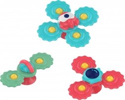 Zestaw 3 kręcących się zabawek typu spinner marki Woopie to interaktywna i kolorowa zabawka dla Twojego dziecka. Każda z zabawek jest inna i ma 2, 3 lub 4 ramiona. Można je przymocować do gładkich powierzchni, co zwiększa możliwości zabawy.