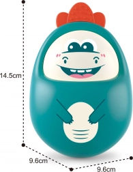 Wystarczy lekko pchnąć, a dinozaur się rozkołysze – dzięki zaokrąglonej podstawie zawsze wraca do pozycji wyjściowej i nie przewraca się. Doskonały do ćwiczenia koordynacji i zabawy bez frustracji.