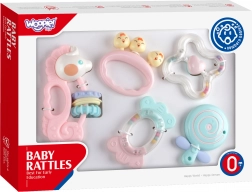 Zestaw WOOPIE Baby oferuje przemyślane połączenie gryzaków i grzechotek, które łagodzą wrażliwe dziąsła i jednocześnie stymulują zmysły dziecka. Różnorodne kształty i powierzchnie pobudzają naturalną ciekawość, wspierają koordynację ręka–oko oraz małą motorykę. Soczyste kolory i subtelne dźwięki grzechotek pomagają rozwijać koncentrację i percepcję.