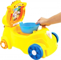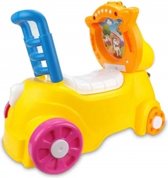 Siedzisko można unieść i wykorzystać ukryty wyjmowany pojemnik jako nocnik lub schowek na drobiazgi i zabawki. Efekty świetlne i dźwiękowe dodają zabawy każdej jeździe i uprzyjemniają naukę nocnikowania.