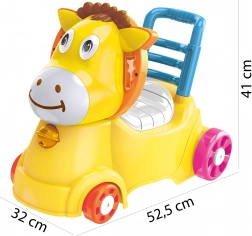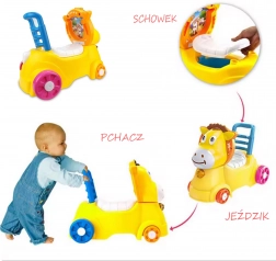 Uroczy żółty osiołek zachęca dzieci do ruchu, poprawia równowagę i koordynację oraz wspiera samodzielność. Dzięki praktycznej rączce i stabilnemu oparciu sprawdzi się zarówno przy pierwszych krokach, jak i podczas bezpiecznego odpychania się i jazdy po mieszkaniu.
