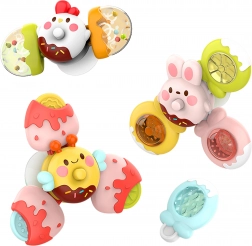 Sensorczne spinnery WOOPIE zachwycą każde dziecko. Zestaw zawiera 3 różne spinnery: pszczołę, kurczaka i królika, które dzieci mogą dzięki gumowym przyssawkom przymocować do gładkiej powierzchni i zabrać wszędzie ze sobą.