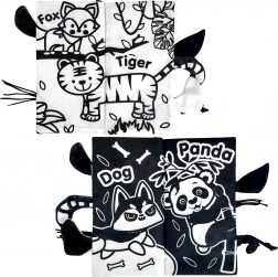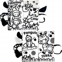 Czarno-białe obrazki ze zwierzątkami są idealne dla noworodków i pomagają rozwijać ostrość widzenia oraz koncentrację.