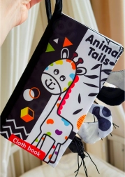 Praktyczne detale, takie jak tekstylne ogonki zwierzątek i metki do chwytania, naturalnie rozwijają małą motorykę. Dzięki pętelce/mocowaniu na rzep książkę z łatwością przymocujesz do wózka, fotelika samochodowego lub łóżeczka – idealna w domu i w podróży.