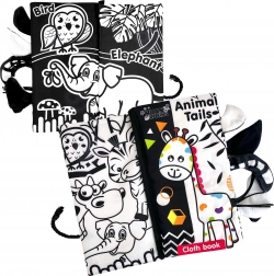 Miękkie strony z szeleszczącymi wkładkami, uszkami i ogonkami wspierają percepcję sensoryczną oraz małą motorykę.