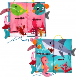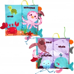 - Stymulacja wzrokowa: wyraziste kolory i ilustracje zwierząt morskich.