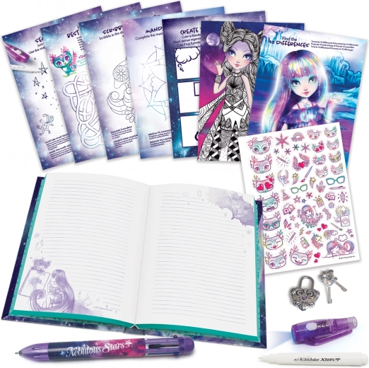 Wejdź do fascynującego świata Nebulous Star z tym tajnym dziennikiem. Ten pięknie ilustrowany dziennik pozwala na przechowanie wszystkich Twoich myśli, życzeń i małych tajemnic w bezpieczny sposób. W zestawie znajduje się magiczny długopis, który dodaje tajemniczości twoim zapiskom.