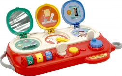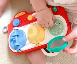 Przyciski, przełączniki i elementy obrotowe rozwijają małą motorykę oraz koordynację oko–ręka, a kontrastowe kolory skutecznie podtrzymują uwagę.