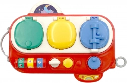 Dzięki solidnemu wykonaniu i wyrazistym kolorom zabawka świetnie wspiera bodźce sensoryczne oraz rozwój małej motoryki, koordynacji oko–ręka i umiejętności poznawczych. Dzieci mogą naciskać, obracać, przesuwać i otwierać, trenując cierpliwość, koncentrację i rozwiązywanie problemów.