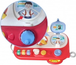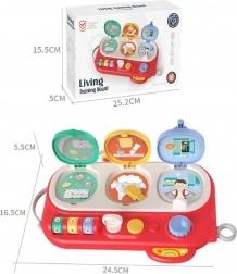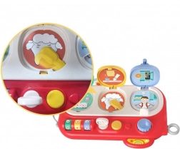 Ruchomy szczoteczkowy element przy obrazku ząbka uczy nawyków higienicznych, a obrotowe pole z ubrankami rozwija kreatywność i wyobraźnię w codziennych sytuacjach.